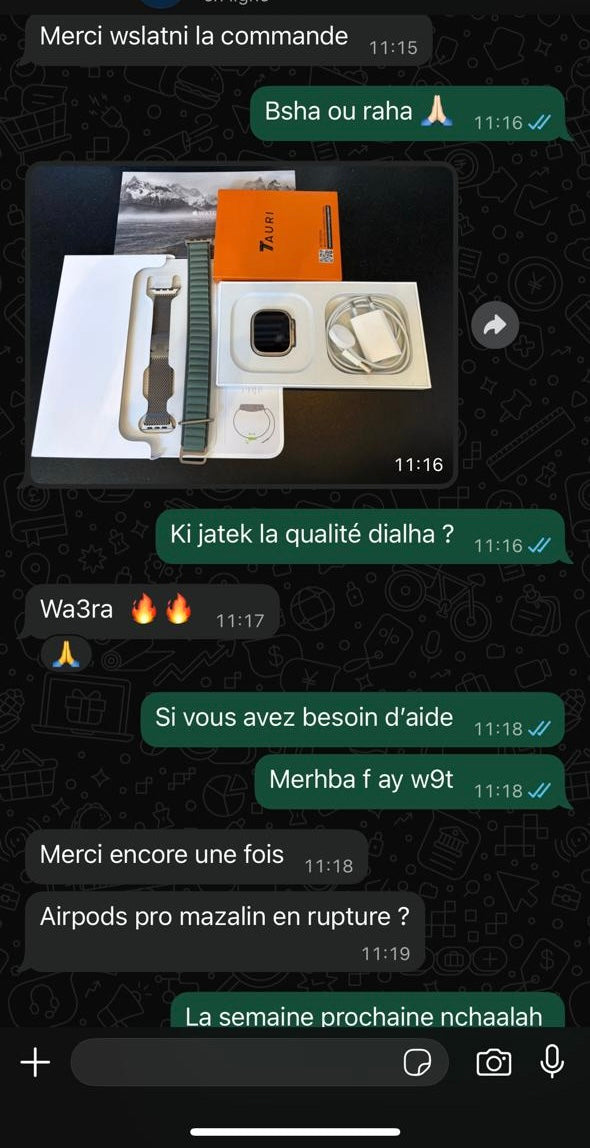 تهنّى،واتساب ديالنا خدام 7/7، كنردّو بسرعة ونحلّو معاك المشكل خطوة بخطوة،عندك ضمان 3 شهور وتبديل ساهل،وزيد عليها: كتفتح وتجرّب قدّام الليفرور وتخلّص غير ملي ترتاح.